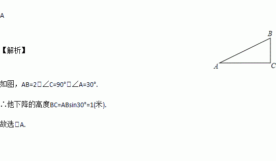 小明沿着与地面成30°角的坡面向下走了2米,那么他下降了( )