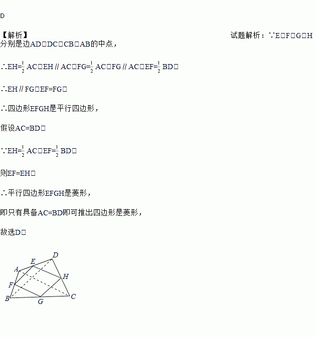若顺次连接四边形ABCD各边的中点所得四边形是菱形,则四边形ABCD一定是( )