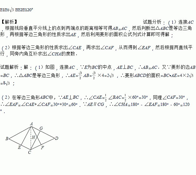 (1)求菱形ABCD的面积;(2)求∠CHA的度数.