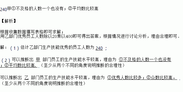(1)估计乙部门生产技能优秀的员工人数为______;