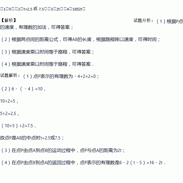 如图,在数轴上点 A 表示的有理数为﹣4,点 B 表示的有理数为 6,点 P 从 点 A 出发以每秒 2 个单位长度的速度在数轴上沿由 A 到 B 方向运动,当点 P 到 达点 B 后立即返回,仍然以每秒 2 个单位长度的速度运动至点 A 停止运动.设 运动时间为 t(单位:秒).