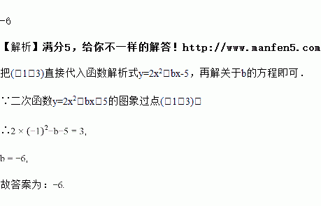 二次函数y=2x2+bx-5的图象过点(-1,3),则b=________.