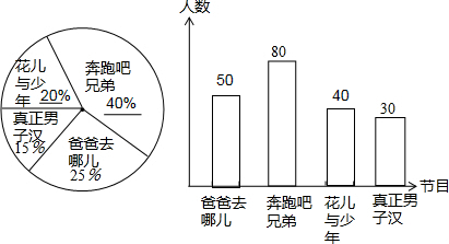 (2)先求出奔跑吧兄弟的百分比,喜欢爸爸去哪里了的人数,喜欢花儿与少年的人数,喜欢花儿与少年的百分比,作图即可,