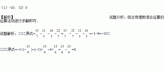(1)2﹣3﹣5+(﹣3) ; (2) -14×(-2)+(-5)×2+4× .
