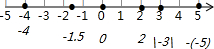 解答:解;属于正数的有2,|-3|=3,-(-5)=5,属于负数的有-4,-1.5,