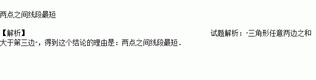 “三角形任意两边之和大于第三边”,得到这个结论的理由是_______________.