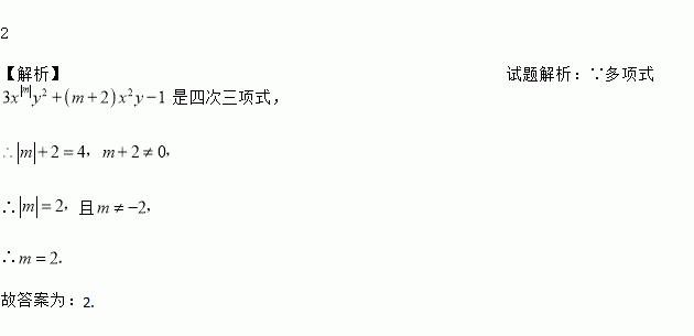 多项式3x|m|y2+(m+2)x2y﹣1是四次三项式,则m的值为_____.