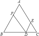 ∴四边形AFDE为平行四边形.∠BFD=∠A=60°,∠BDF=∠C=60°,∠CED=∠A=60°,∠CDE=∠B=60°.