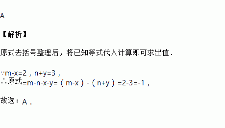 若 m﹣x=2,n+y=3,则(m﹣n)﹣(x+y)=( )