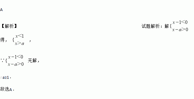 若关于x的一元一次不等式组无解,则a的取值范围是( )