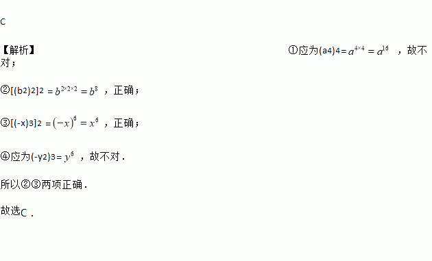 ③[(-x)3]2=(-x)6=x6;④(-y2)3=y6.