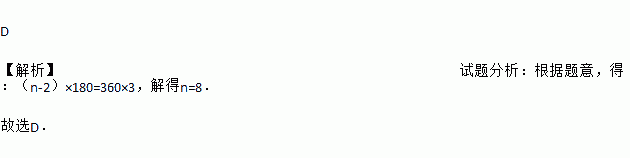 一个多边形的内角和是外角和的3倍,则该多边形的边数为( )