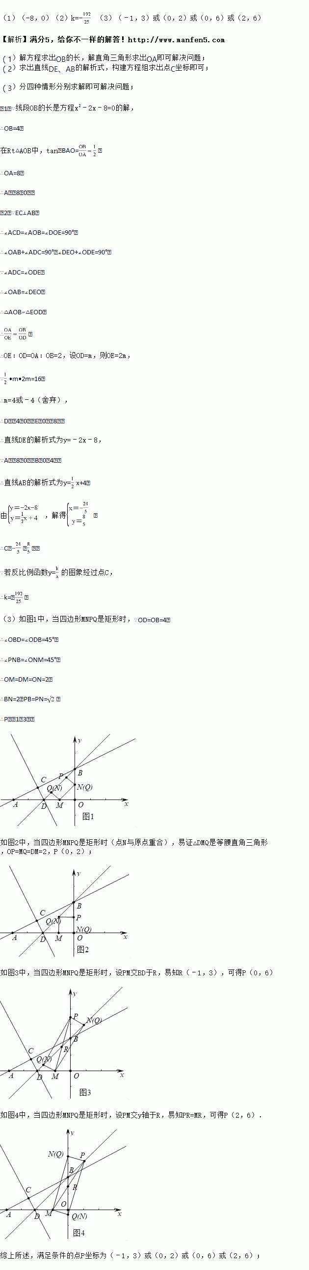 (3)在(2)条件下,点M是DO中点,点N,P,Q在直线BD或y轴上,是否存在点P,使四边形MNPQ是矩形?若存在,请直接写出点P的坐标;若不存在,请说明理由.