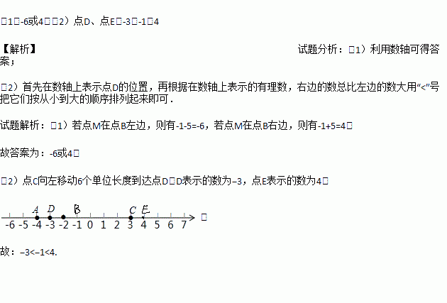 (2)在数轴上表示:将点C向左移动6个单位到达点D,点A的相反数为点E,并用“<”号把B、D、E三点所表示的数连接起来.