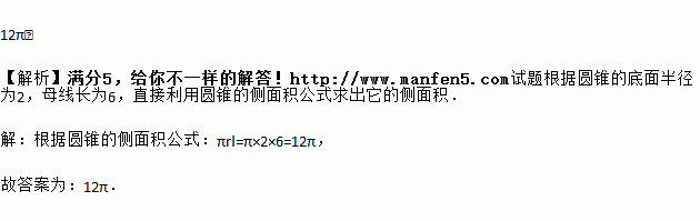 圆锥的底面半径为2,母线长为6,则它的侧面积为_____.