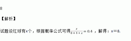 一个不透明的袋中装有除颜色外均相同的8个黑球、4个白球和若干个红球.每次摇匀后随机摸出一个球,记下颜色后再放回袋中,通过大量重复摸球试验后,发现摸到红球的频率稳定于0.4,由此可估计袋中约有红球_____个.