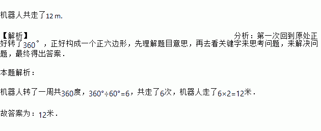 某科技小组制作了一个机器人,它能根据指令要求进行行进和旋转,某一指令规定:机器人先向前方行走2 m,然后左转60°,若机器人反复执行这一指令,则从出发到第一次回到原处,机器人共走了多少米?