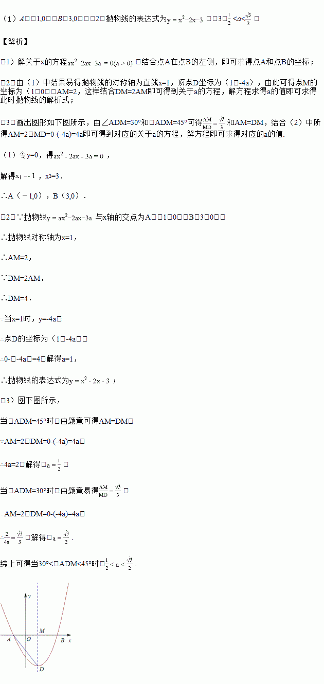 (3)当30°<∠ADM<45°时,求a的取值范围.