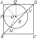 分析:首先取BD的中点E,连接AE,OM,ON,OP,OQ,由BD是正方形ABCD的对角线,可得AE⊥BD,又由⊙O与正方形ABCD相切于点P、Q,证得四边形APOQ是正方形,根据切线长定理,可得AE过圆心O,则可求得OE与OA的长,可得AE的长,继而求得答案,解题时注意对圆心位置的讨论.