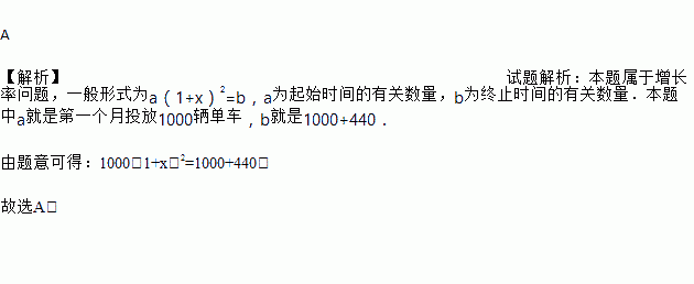 共享单车为市民出行带来了方便,某单车公司第一个月投放1000辆单车,计划第三个月投放单车数量比第一个月多440辆.设该公司第二、三两个月投放单车数量的月平均增长率为x,则所列方程正确的为( )