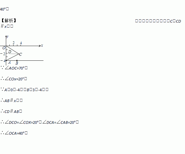 如图,已知A(0,﹣4)、B(3,﹣4),C为第四象限内一点且∠AOC=70°,若∠CAB=20°,则∠OCA=______.