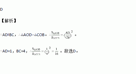 如图,梯形ABCD中,AD∥BC,对角线AC、BD相交于O,AD=1,BC=4,则△AOD与△BOC的面积比等于