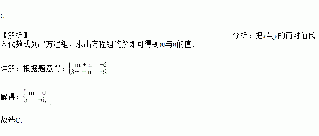 C. m=0,n=-6 D. m=9,n=-15