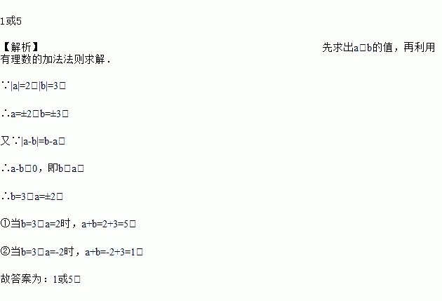 若|a|=2,|b|=3,且|a﹣b|=b﹣a,则a+b=_____.