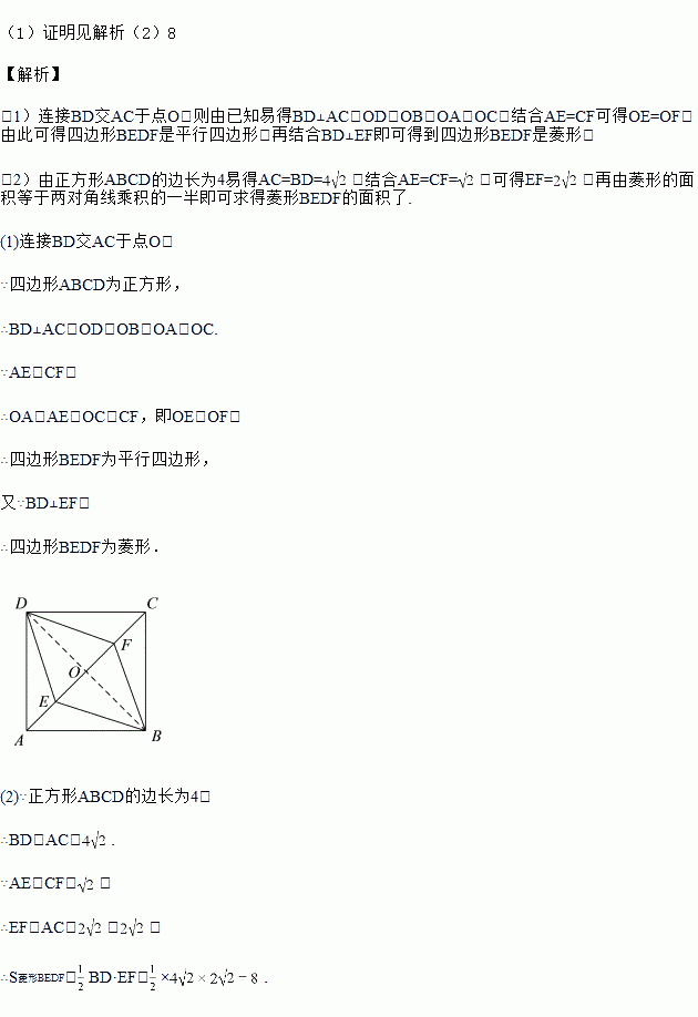如图,E,F是正方形ABCD的对角线AC上的两点,且AE=CF.