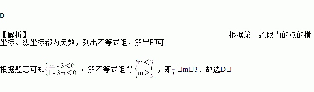 若点A(m-3,1-3m)在第三象限,则m的取值范围是( )