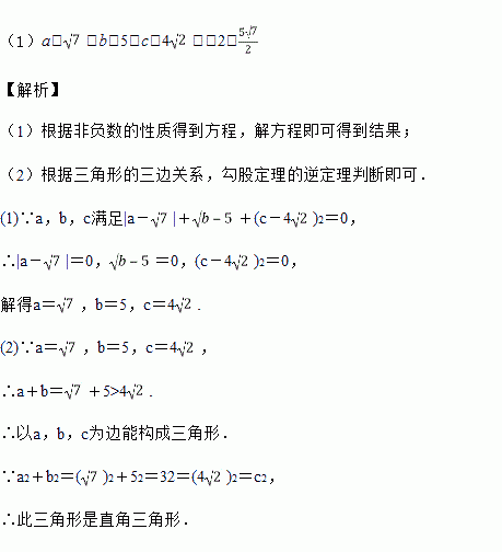(2)判断以a,b,c为边能否构成三角形?若能构成三角形,此三角形是什么形状?并求出三角形的面积;若不能,请说明理由.