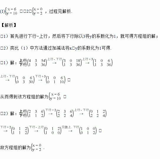 ,用数表可以简化表达解一次方程组的过程如下,请补全其中的空白: