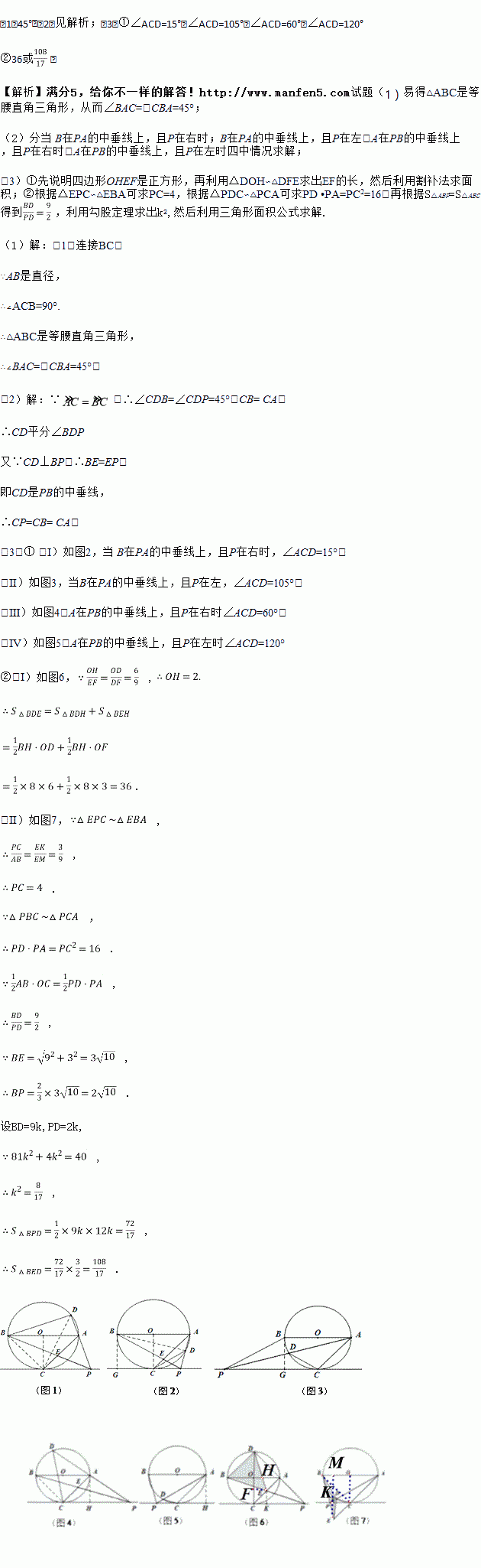 ①当点A在线段PB的中垂线上或点B在线段PA的中垂线上时,求出所有满足条件的∠ACD的度数;