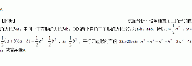 如图是一个由5张纸片拼成的平行四边形,相邻纸片之间互不重叠也无缝隙,其中两张等腰直角三角形纸片的面积都为S1,另两张直角三角形纸片的面积都为S2,中间一张正方形纸片的面积为S3,则这个平行四边形的面积一定可以表示为( )