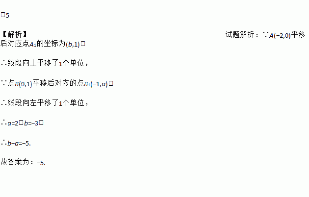 如图,A,B两点的坐标分别为(-2,0),(0,1),将线段AB平移到线段A1B1的位置.若A1(b,1),B1(-1,a),则b-a=________.