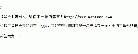 小明不慎将一块三角形的玻璃摔碎成如图所示的四块(即图中标有1、2、3、4的四块),你认为将其中的第____块带去,就能配一块与原来一样大小的三角形.