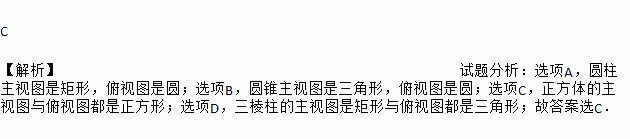 下面几何体中,其主视图与俯视图相同的是( )