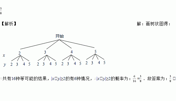 把同一副扑克中的红桃2,3,4,5有数字的一面朝下放置,洗匀后甲先抽取一张,记下数字后将牌放回,洗匀后乙再抽取一张.设先后两次抽得的数字分别记为x和y,则|x-y|≥2的概率为