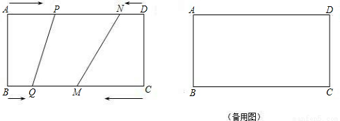如图,在矩形ABCD中,BC=24cm,P、Q、M、N分别从A、B、C、D出发,沿AD、BC、CB、DA方向在矩形的边上同时运动,当有一个点先到达所在运动边的另一个端点时,运动即停止、已知在相同时间内,若BQ=xcm(x≠0),则AP=2xcm,CM=3xcm,DN=x2cm,