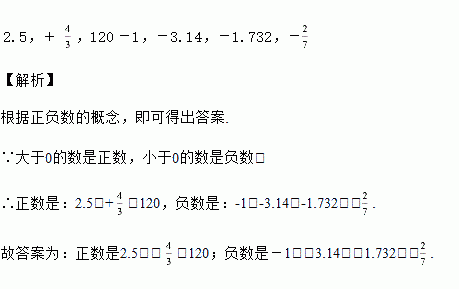 有理数:-1,2.5,+,0,-3.14,120,-1.732,-中,正数是____________;负数是____________.