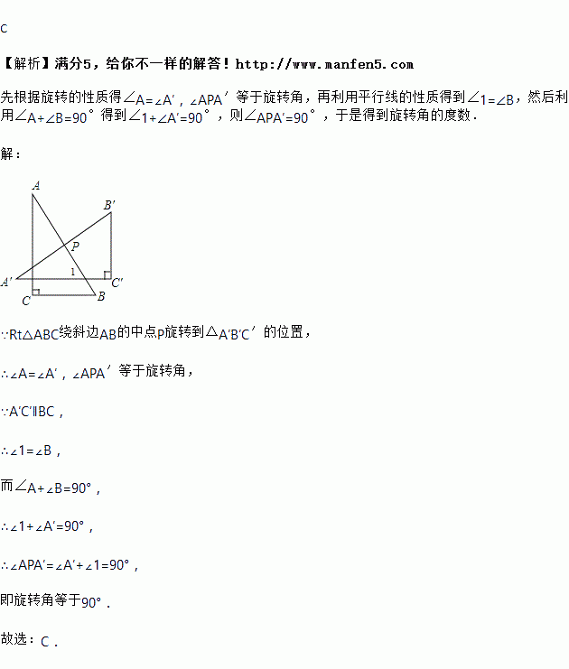 如图,将绕斜边的中点旋转到的位置,使得,则旋转角等于( )