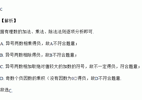 C. 异号两数相加 D. 奇数个负因数的乘积(没有因数为0)