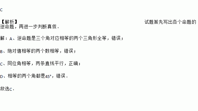 C. 两直线平行,同位角相等 D. 如果两个角都是45°,那么这两个角相等