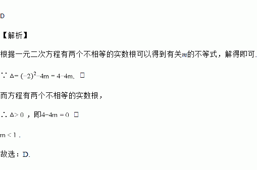 写一个你喜欢的实数m的值 ,使关于x的一元二次方程有两个不相等的实数根.