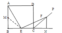如图(图1、图2),四边形ABCD是边长为4的正方形,点E在线段BC上,∠AEF=90°,且EF交正方形外角平分线CP于点F,FN⊥BC,交BC的延长线于点N。