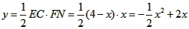 | (2)①tan∠BAE=tan∠FEN= ∴ ∴BE(EC+CN)=CN(BE+EC), ∴BE·EC+BE·CN = BE·CN+CN·EC, ∴BE·EC=CN·EC, ∴BE=CN, ∴BE=FN= x, ∴ ② 当x=2时,y有最大值为2。 |