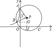 分析:结合已知,可根据点O、A、C的坐标得出圆心P的坐标,和PA的长,然后过点P作PM⊥x轴于M,PN⊥y轴于N,过点B作BG⊥PM于点G,证明△ANP≌△PGB,从而求出点B的坐标,继而求出开的值.