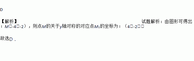 D 【解析】试题解析:由图形可得出:M(-4,-2),则点M的关于y轴对称的对应点M1的坐标为:(4,-2). 故选D.