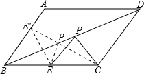 分析:根据菱形的判定,得出平行四边形ABCD为菱形,作出E关于BD的对称点E′,转化为线段长度的问题,再根据等边三角形的性质判断出△BCE′为直角三角形,利用勾股定理即可求出CE′的长.