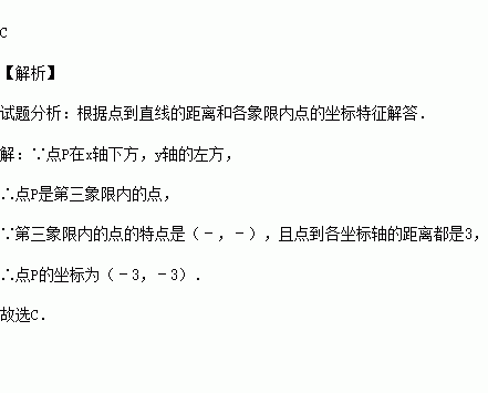 若点P在x轴的下方,y轴的左方,到每条坐标轴的距离都是3,则点P的坐标为( )